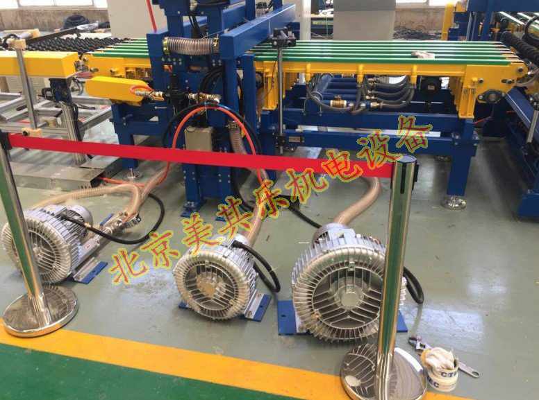 玻璃傳送高壓鼓風(fēng)機(jī),在此設(shè)備上的作用是,在整體流水線傳輸過程中,由玻璃傳輸專用高壓鼓風(fēng)機(jī)提供一定的吸力,通過PVC管鏈接至履帶,因履帶上有很多規(guī)則的小孔,所以能通過吸力固定住玻璃,也可以對玻璃進(jìn)行清洗、打磨、上色等,對玻璃不產(chǎn)生任何影響,沒有任何的痕跡,此類風(fēng)機(jī)也常用于磨邊機(jī),氣浮臺等,原理相同。