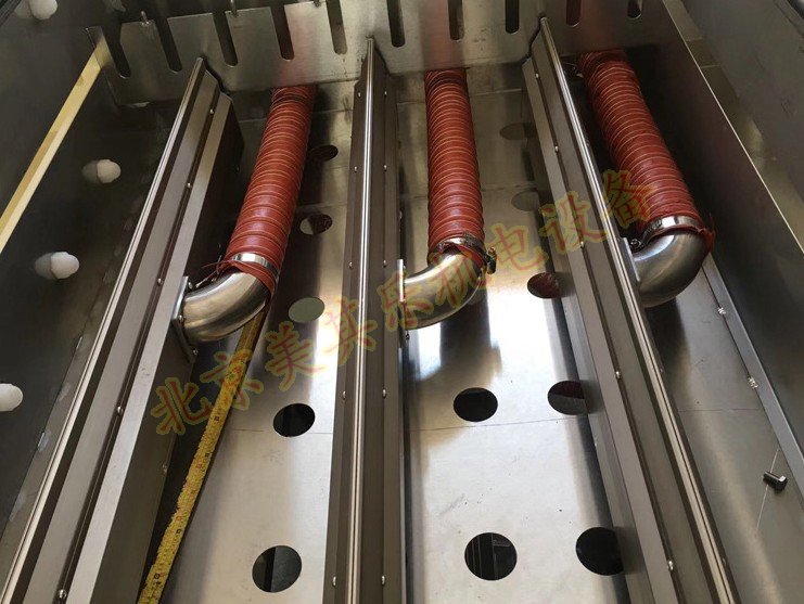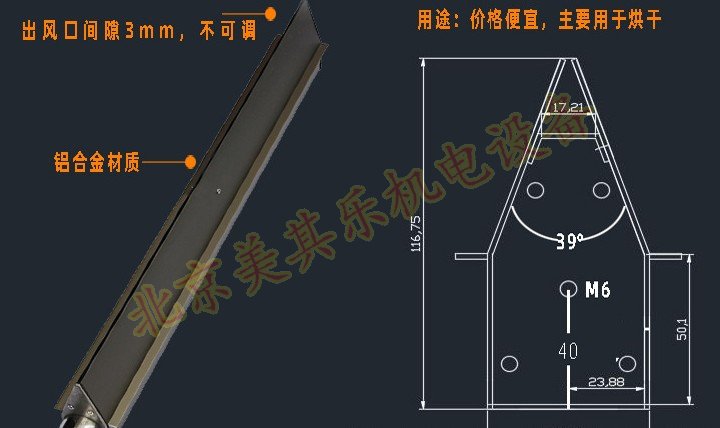 鋁合金風刀,定制產品,開品有可調節有死口的,進風口的大小及位置,安裝方式方位,風刀的長度等,需聯系定制。圖片為山東某客戶吹水使用。
