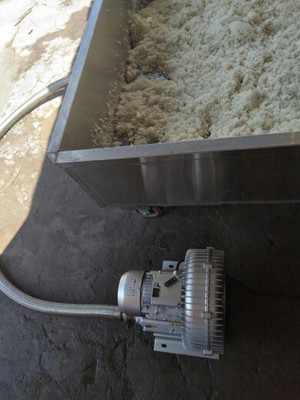 使用用途:采用氣泵的高壓吹力,通過管道將風送至不銹鋼容器的底部,加速食物熱氣的蒸發與冷卻,再配置一臺工業風扇,效率大大提升,縮短工時,節省時間