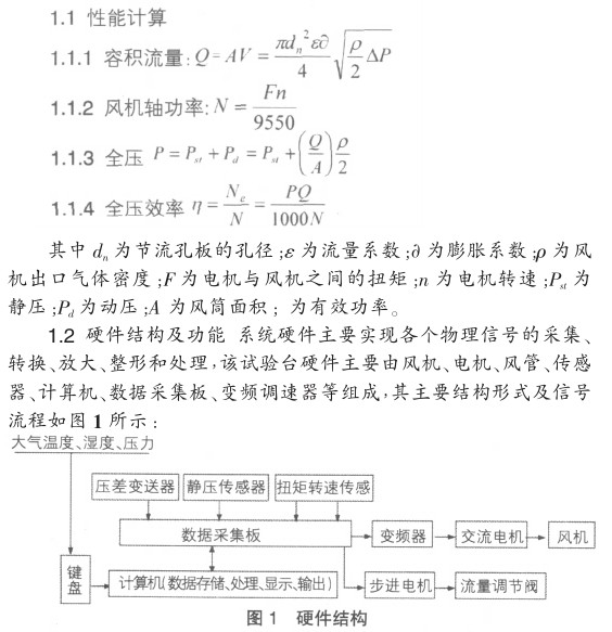 本系統參照國家標準GB 1236- 85《通風機空氣動力性能試驗方法叫采用孔板壓差法測量流量、扭矩法測量功率、變頻調速器改變風機轉速、步進電機控制錐形節流閥調節工鞏等方法進行通風機出氣風管性能試驗