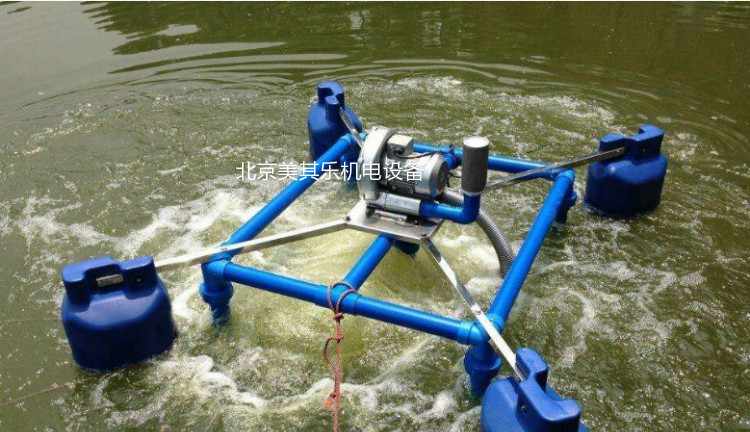 圖為一體式增氧風機,根據水車式演變而來,四周的柱子可調節,可深可淺