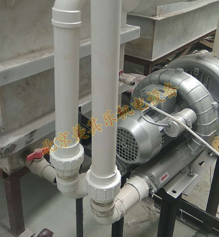 3、圖為污水環(huán)保行業(yè)使用漩渦氣泵,采用循環(huán)模式應(yīng)用到小型曝氣裝置中,水深不超過1米,使用的為小型號(hào)750w漩渦氣泵,里面的氣體曝氣后再通過進(jìn)氣口抽回,如此循環(huán)利用,因氣泵的密封性較好,所以對(duì)氣體的損失很小。如在使用要過很高的場所,推薦使用全密封型漩渦氣泵。
