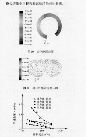 計(jì)算結(jié)果:由于漩渦風(fēng)機(jī)吸力面倒角 和壓力面倒角已經(jīng)做過試驗(yàn),有試驗(yàn)結(jié)果做爹照,故先對(duì)這兩個(gè)模型進(jìn)行數(shù)值模擬,得出結(jié)果后分析是否與試驗(yàn)結(jié)果保持一致方可確定所選數(shù)值模型的可靠性。