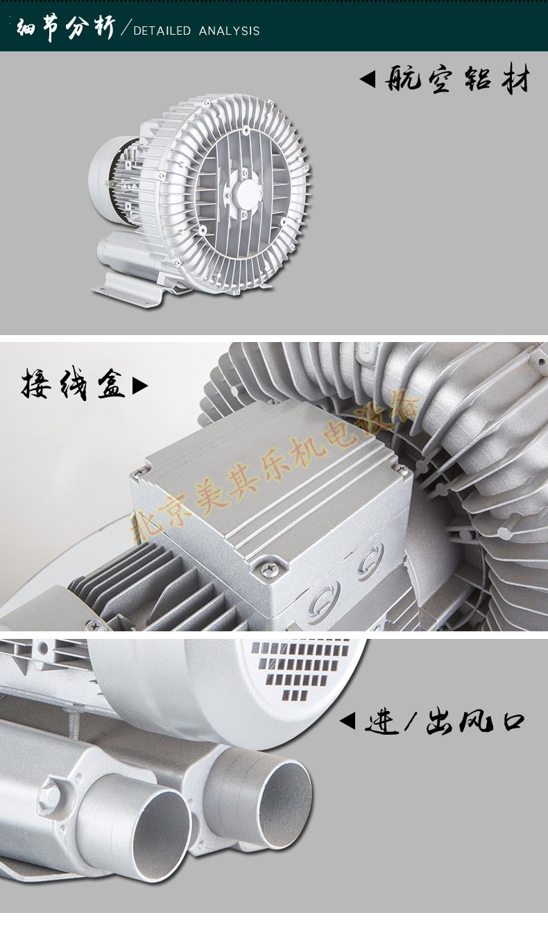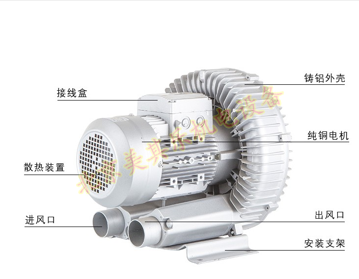 1.機殼材質:環形高壓鼓風機采用超強度壓鑄鋁,壓鑄鋁與奔馳汽車輪毅相同鋁材,相對于普通鋁合金來說,壓鑄鋁更堅固,相對于鐵殼風機,更有輕量化的作用。